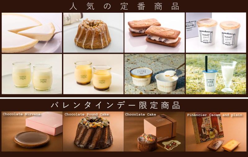 チーズケーキニルバーナやヨーグルト、フィナンシェなどの人気商品や